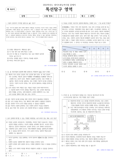 일단 어제 올린 글이 10대 영역뿐만 아니라 전 영역 카테고리 1위에 등극하게 해주어서 고마워♥ 사랑해♥ 일단 올린 답은 2,3,5,*,2 이거야. 문제 4번. 갑을병 사상가들이 서로에게 제기할 비판을 고르는 문제는 출제 오류야. 갑과 병 사상가들의 입장에 오류가 있어서ㅠㅠ 톡선 기념과 문제를 풀어준 수험생에게 고마움, 그리고 문제 출제 오류로 인해 혼란을 끼쳤다는 점에서 2차 시험을 만들었어