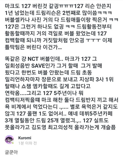 127 올팬없는거 마크탓임