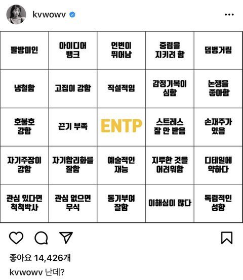 권민아를 보면 정말 전형적인 entp같아