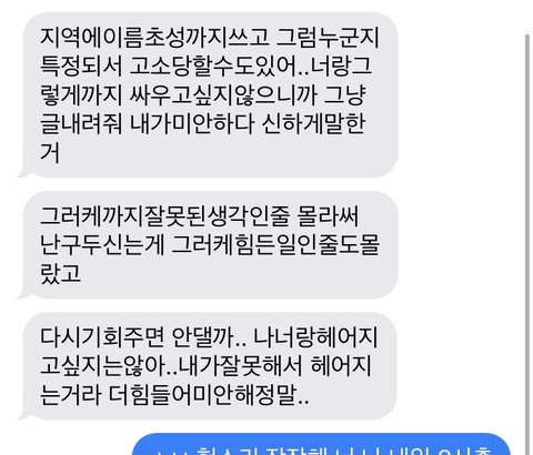 카톡 차단했는데 문자로 진짜 헤어질거면 글 지우래요