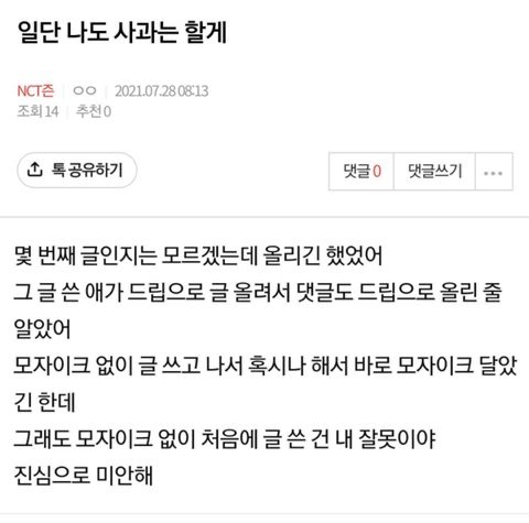 ->뒤늦게 사과 (트리마제는 못보고 계속 고소 처리함)