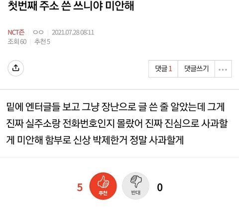 +트리마제 구라인줄 알았으나 전화번호를 입력해서 카톡 프로필을 확인한 결과 진짜 자기가 댓에 남긴 이름과 일치