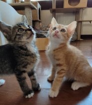 이유식 먹여서 돌본 갓 2개월 넘긴 치즈냥, 고등어냥 2마리를 입양보냈습니다.