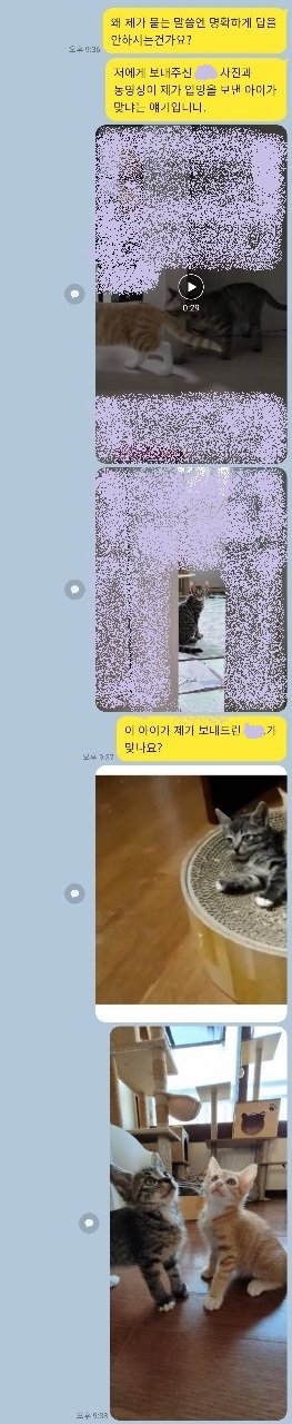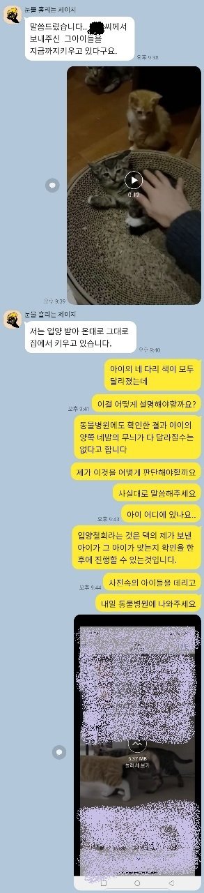 사진 및 영상 속 고등어냥이가 제가 입양을 보낸 아이가 아니더군요.