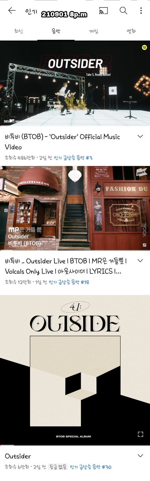 뮤비-활동기간 내내 유튭 음악 인기동영상