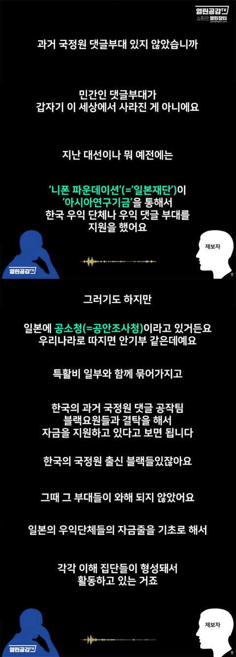 너희들은 밑에 내용, 이거나 좀 제대로 봐라. 수당을 받으면서 이재명 까는 글 올리고, 댓글로 동조하는 애들은 패스해도 된다.[아이씨!] 난 글이랑 댓글 엄청 쓰지만 받는건 없는데? 하는 애들은 정신차리고 봐라. 끝까지 다봐라.