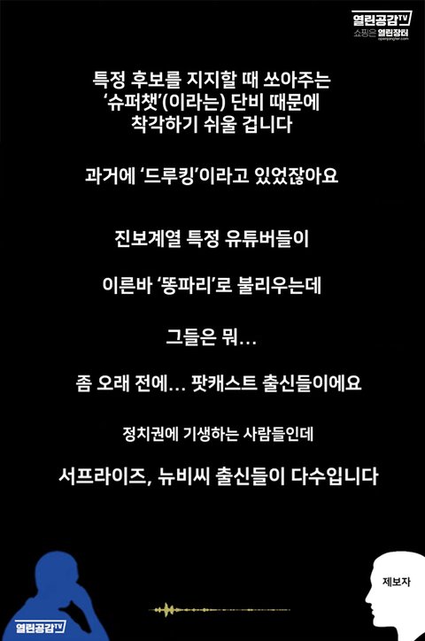 아... 민주당 망하고 자칭 보수당이 최고로 잘되길 바라는 친구들이면..그렇더라도좀 상식적으로 하자, 너네 후보 잘났다고 떠들어야지. 애초에 깜이 안되니까다른당 후보들 갖고 그렇게 뻥쳐서 걸고넘어지면 되냐?