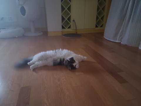 캣타워도 많이 해줬는데...왜 바닥에서 뒹굴뒹굴 하는지...