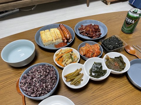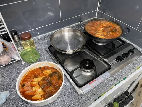 전 날 불어나는 김치찌개에 생고생을 해서 찌개만 준비해온터라