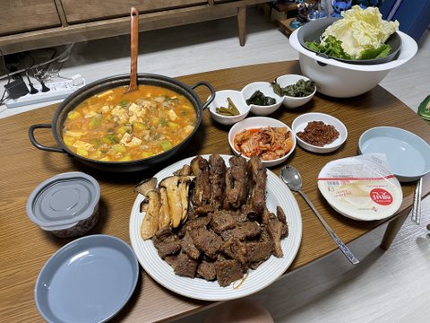 된장찌개, 돼지갈비.