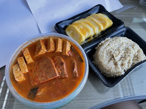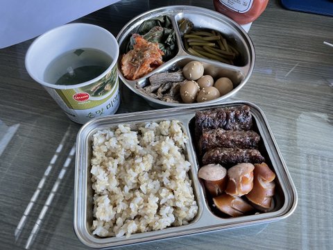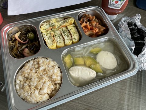 맑은 순두부탕과 계란말이등을 가져온 점심 도시락입니다.