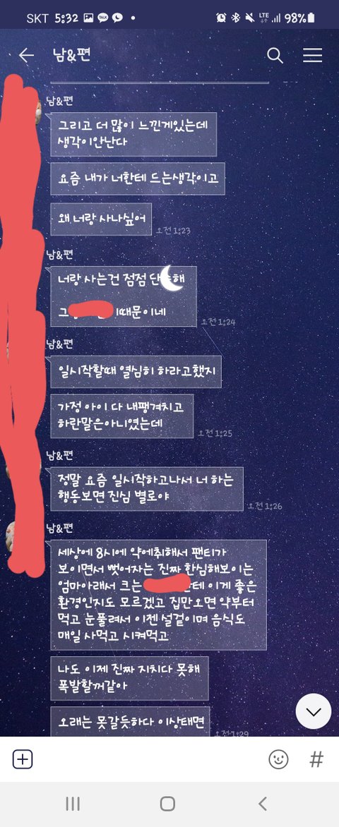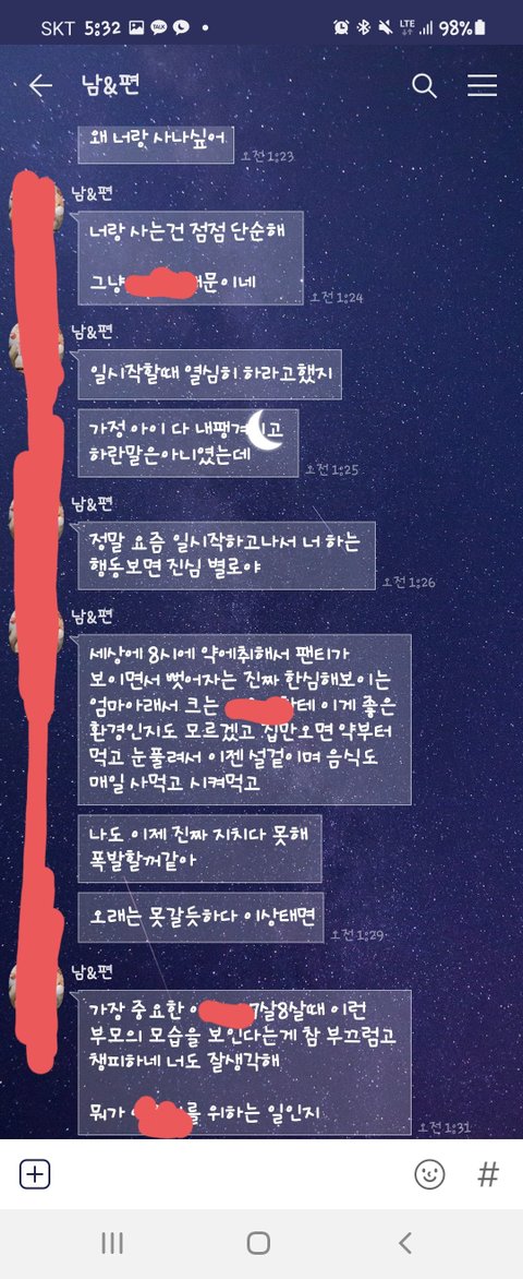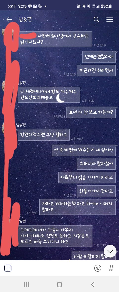 10일에 남편은 백신을 맞았고 토요일에 출근하지 않겠다고 해서 알겠다고 했고 저녁 2번 차리고 뒷정리 까지 다했습니다. 그과정에서 저는 늦지 않으면 기다렸다가 먹겠다 아님 먹고와라했더니 성질을 내면서 밥차리는게 그렇게 힘드냐 너 어차피 뒷정리도 안하지 않느냐 하는 소릴 듣고 저도 화가나서 전날 치킨 먹은 그릇 세개 그거 안치운거 아니냐하고 아이가 눈치 보길래 그만 했습니다.