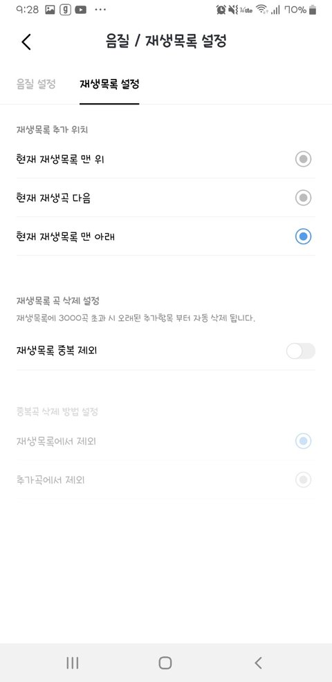 참고로 음총팀 가이드대로 다 따라했구 재생목록 중복 제외도 체크 풀린 상태야!