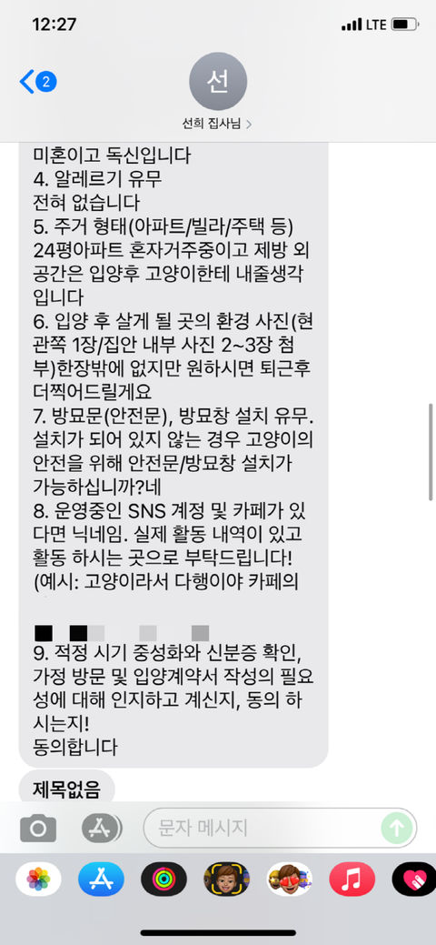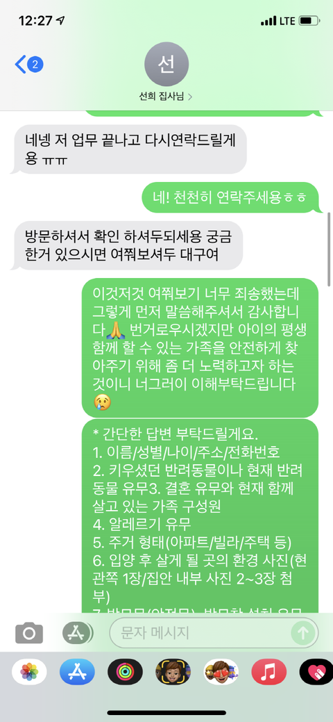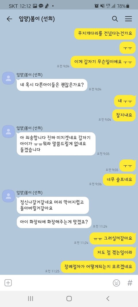 그러던 중 가해자가 입양하겠다고 연락이 왔고 처음 입양 보내는 거라 잘 몰라서 입양 절차도 찾아도 보고 저 나름대로 입양하는 사람이 어떤 사람인지 알아보기 위해 여러 가지 질문을 하는 등 노력했습니다.