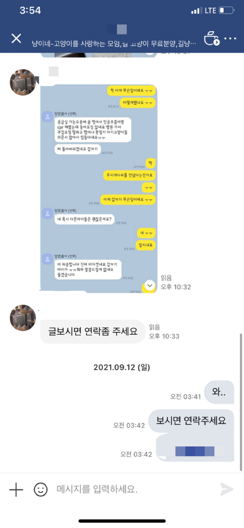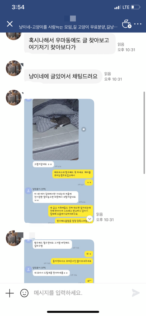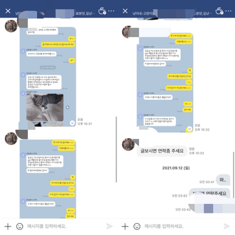 1. 다른 피해자분께서 고양이 카페 채팅으로 저에게 연락 주신 내용입니다.