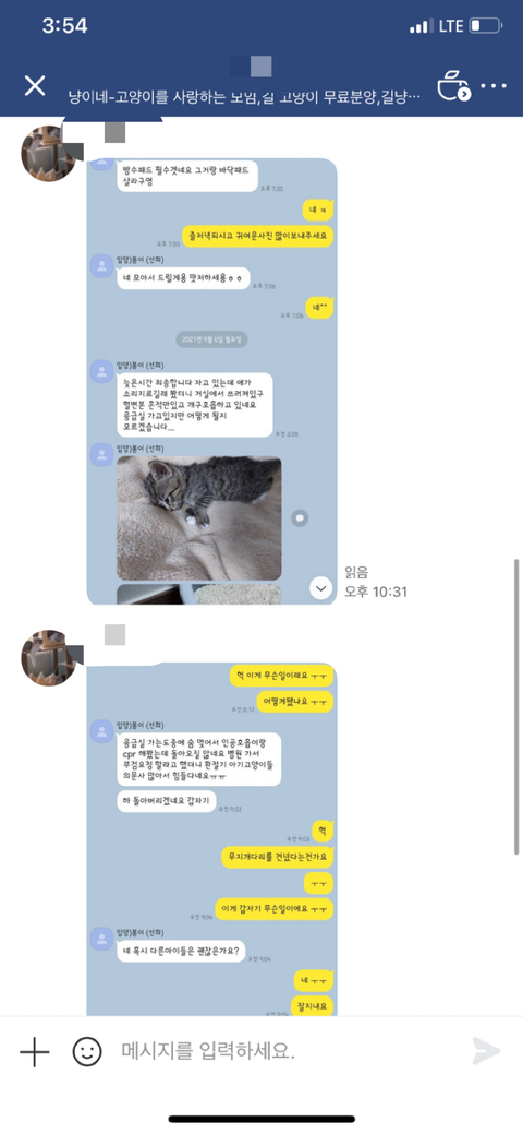 고양이가 위독하다며 저한테 보내줬던 다른 고양이 사진이 그 피해자분 고양이라고 하셨습니다.