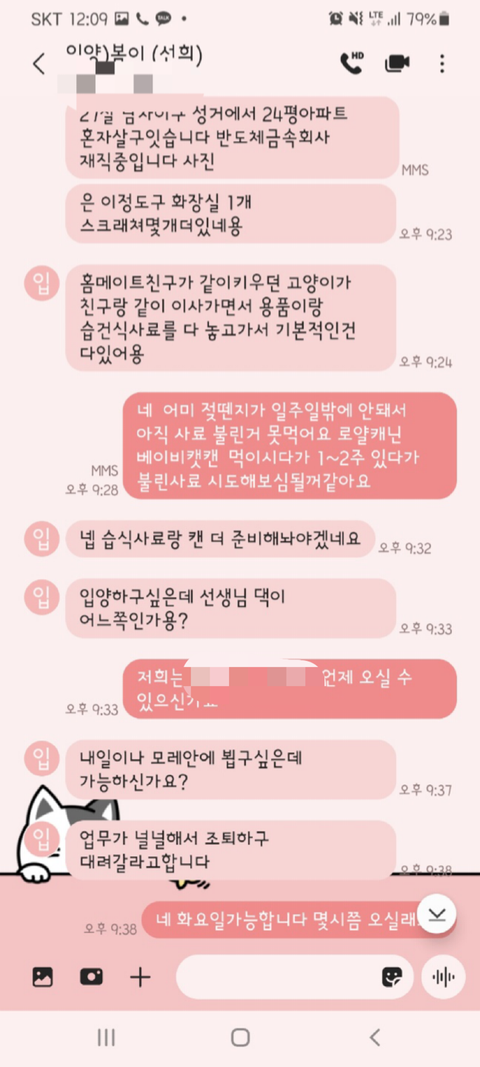고양이 키워 본 경험도 있다고 했고, 고양이 물품도 다 준비되어 있는 상태라 정말 한치의 의심도 하지 못했습니다.