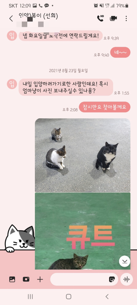 8. 네이트판에 글을 올렸고 또 다른 피해자분께서 고양이 카페 채팅을 통해 연락을 하심.