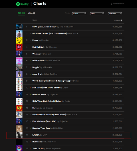 리사 솔로 Lalisa 5일째인데 스포티파이에서 글로벌 17위이면 선전하는 거 아닌감