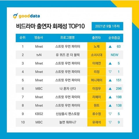 이런식으로 정치질하니 좋아 슴빠야?태용보다 분량적은 강다니엘도 화제성 순위 들었는데 태용은 3주내내 한번도 못듦 유투브에도 태용욕밖에 없고 동남아외퀴 첫주 조회수로 딸치는거 처음봄 차라리 이채연이면 몰라