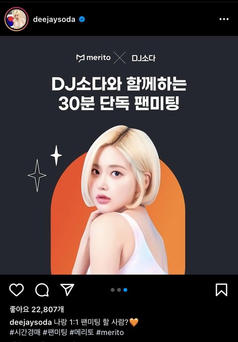 메리토라는 어플에서 dj 소다 시간 경매하고 팬미팅 하는 거