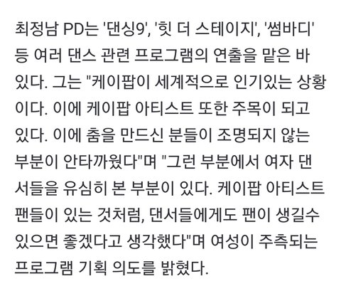 다들 댄서 분들에 집중해서 봐줬음 좋겠어