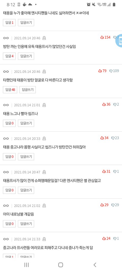 갤련들 개 싸발적인데 타팬들도 먹금쳐안하고 베댓올리고