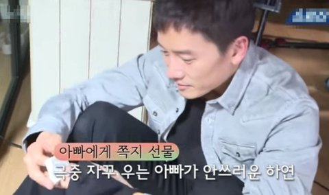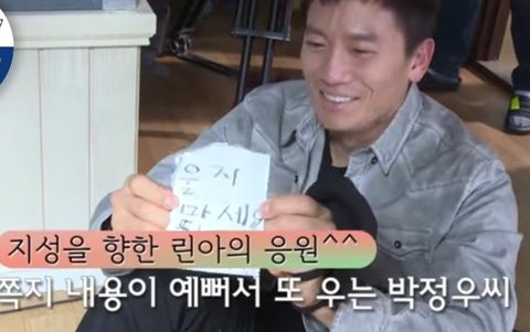 우는 연기 찍고있는 지성에게 아역배우 린아가 건넨쪽지
