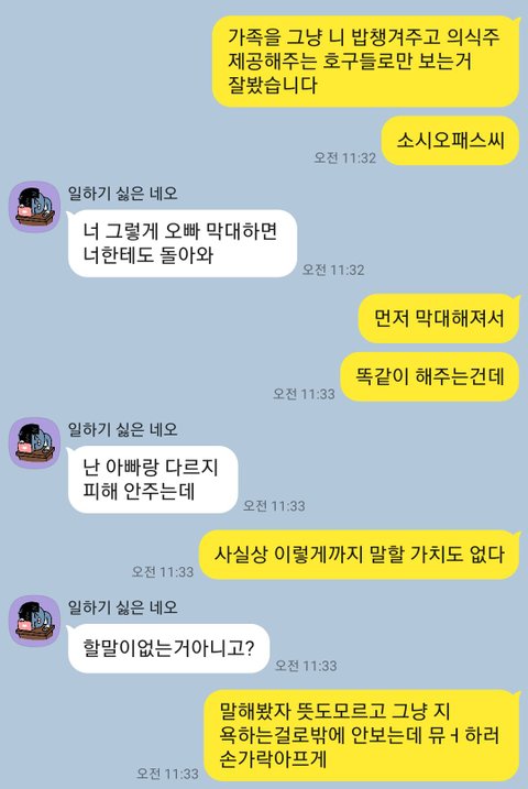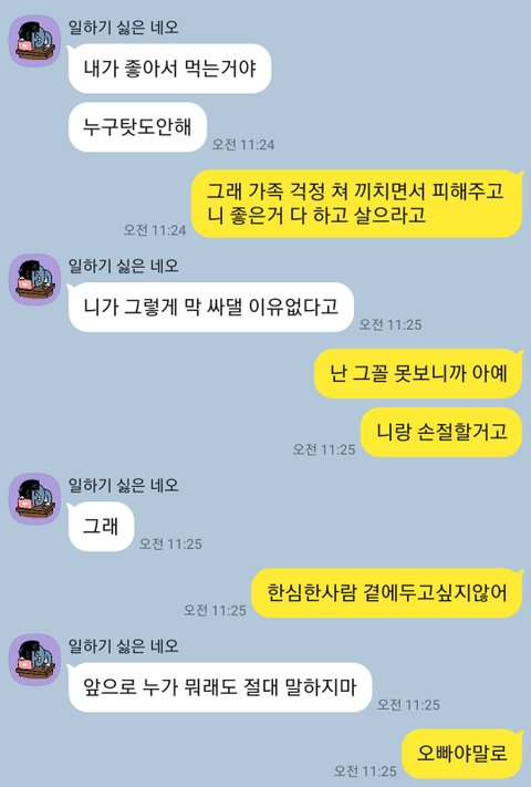 특히 여동생은 그 이유로 여태 쌓인것이 폭발하여 오빠에게 갖은 막말을 했습니다(약속도 안지키는 책임감이 없는 인간이다, 니같은 인간이랑은 앞으로 손절이다 등 카톡 내용 첨부)
