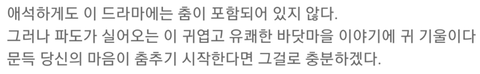 애석하게도 춤이 포함되어 있지 않다고 했던 기획의도