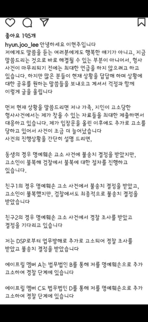 현주 말 앞뒤가 안맞잖아.. 니네들이 말하는 감정호소 어쩌고를 떠나서 현주 본인이 뱉은 말들이 사실관계 확인이 안되는데 왜 자꾸 현주가 진실성이 높다고 말하는거임..? 나 정말 네이트판 처음 댓글써보는데 이해가 안가서 그럼.. 무대하다 넘어져서 다리 다쳤다고 힘들다며 에이프릴 자체예능에서 군생활 같은 힘든 일 다 빠지고 공연 끝나고 업혀댕김 -> 넘어졌다는 날, 팬들의 직캠을 보면 잠시 삐끗했고 그 뒤로 웃으며 안무 소화함, 채원과 연애함으로 자신을 방관하고 함께 괴롭혔다던 매니저에게 웃으며 업혀다님..? 현주가 주장했던 에이프릴 멤버 전원의 데뷔초 (2014)부터 폭행,폭언,따돌림...? 이건 조금만 알아보면 멤버들이 2015년 부터 차례대로 입사한 걸 알 수 있음 명백한 거짓 애초에 나은은 에이프릴 데뷔 몇개월전에 들어옴.. 채원이 주장한 현주 생방 뮤직뱅크 펑크. 이 후로 신인이였던 에이프릴은 꿈사탕으로 뮤직뱅크 활동을 하지 못했고 현주 뮤뱅 펑크날로 지목 된 날의 뮤뱅 녹화를 보면 현주 단독샷이 하나도 없고 현주 클로즈업으로 시작되는 도입부 부분 또한 잘렸음 현주를 피해자, 에이프릴을 가해자로 몬 결정적인 역할은 유튜버들의 악의적 편집과 억까영상들.. 영상들 뒷부분 앞부분 다 찾아보면 절대 현주가 왕따 당하는 피해자 느낌이 아님.. 이제라도 밝혀진 사실이 더 있는데 너무 많아서 다 쓰진 못하겠음 눈막귀막하지말고 이젠 인정하자.. 다른 건 다 몰라도 현주가 거짓말을 한건 사실. 정말 세세하게 다 찾아보고 이렇게 네이트판 글썼으면 좋겠음..