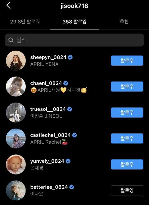지숙 애초에 팔로우 안했음 허영지는 이현주 이나은 둘 다 언팔