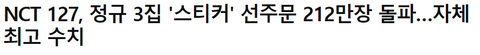 컴백을 하루 앞둔 NCT 127(엔시티 127)의 정규 3집 선주문량이 212만장을 넘어섰다.