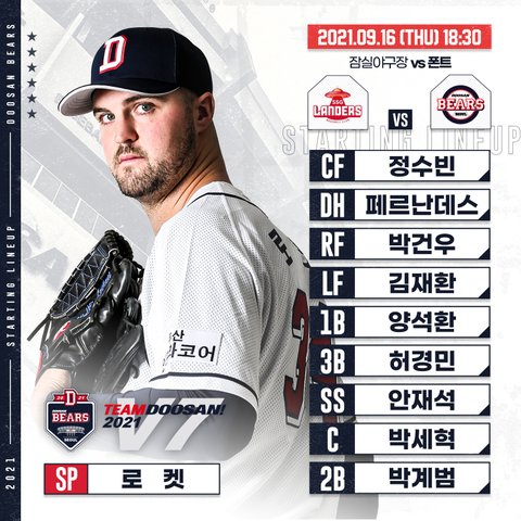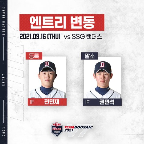 9.16 두산 베어스 엔트리 변동 + 라인업