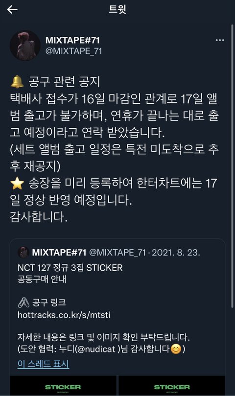 믹스테입 공구 택배 공지 올라옴
