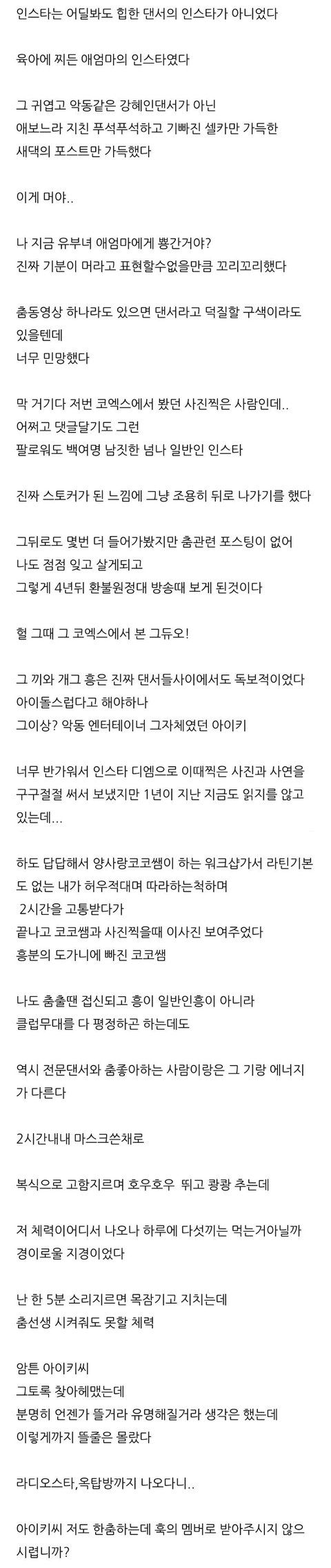 본격적인 댄서로서의 활동을 아이 낳고 나서 시작했는데