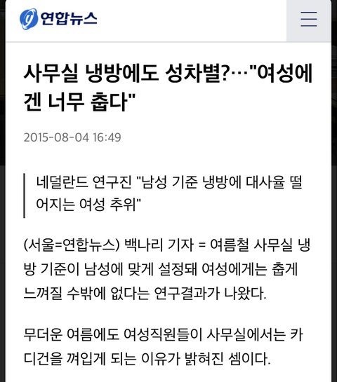 냉방온도로 차별받는 여성들