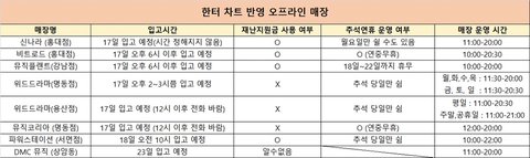 한터 반영되는 매장 리스트래