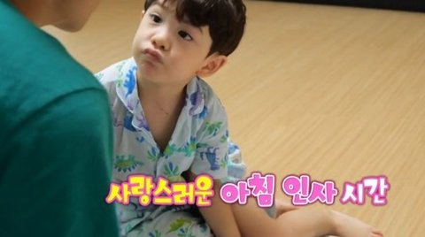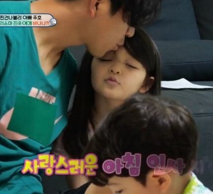 나은이 이마에 뽀뽀하면서 아침 인사를 함