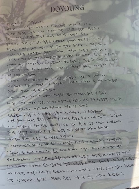 나 진짜 너무 감동받아서 울면서 읽었음… 나 도영이라는 사람을 만나고 좋아할 수 있어서 너무 행복해 진짜 감동이다 땡스투라 가볍게 쓸 수 있었을텐데 항상 뭐든 진심을 다해줘서 고마워 도영아… ㅠㅠ