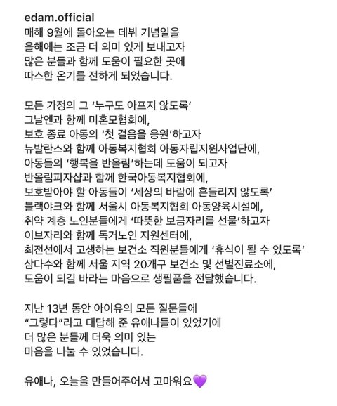 아이유 ㅠㅠㅠㅠ 글 다 읽어봐 너무 감동임