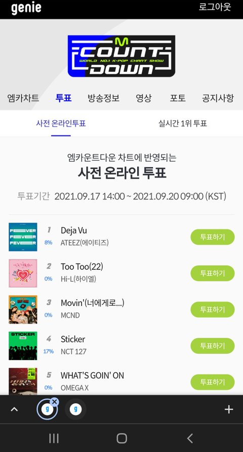투표하러 가자 지니 이용권있으면 2번씩 할수있어 !!~~~!!!! 레츠고