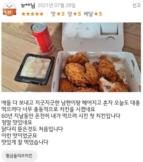 옆에 가까이 계신다면 제가 한마리 시켜 드리고 싶어요 이제부턴 자신만을 위해서 사세요
