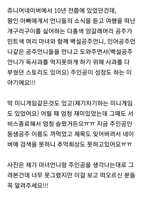성인이 되고 이리 치이고 저리 치이며 살다 보니 어릴 때 기억들이 자꾸 떠오르는데 그 기억들이 점점 잊혀져가고 잊지 않게 해주는 것들은 다 사라져가는게 너무 속상해요... 그림과 글을 보고 떠오르는 이름이나 단어가 있으신 분들 저에게 알려주세요!!!!!