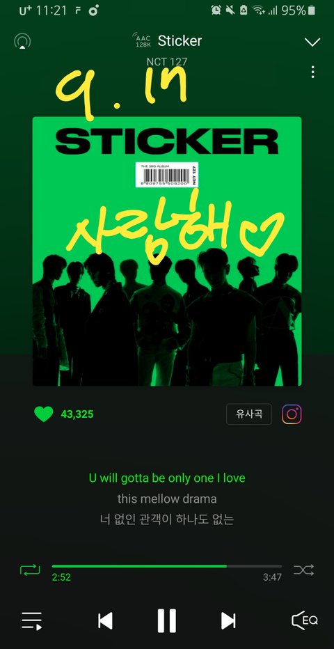 오늘 하루 같이 달려서 행복햇다 성적도 생각했던것보다 좋아서 기분 째진다 숨스밍하자 127칠프사랑해 끝