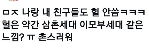 진짜 헐이다.. 나 18살인데 나만 헐써??? 엥도 쓰는데 헐이랑 짱이 더 착착 감기지않냐.. 욕하기도 싫음 ㅠㅠ 그래서 조카 안쓰고 짱쓰는데.... 친구없는 이유를 찾았네..