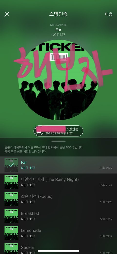 스밍인증 컴백쇼 보느라 못한애등 지금이라도 기기해