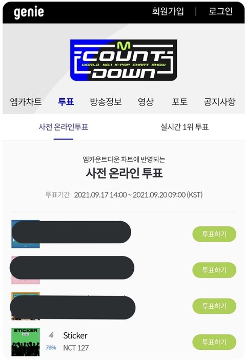 엠카 사전투표 부탁해 1계정당 3표 가능하대 아이디 제출한 사람은 재로그인 못해서 스밍 돌리는 친구들이 투표 해줘야할거같아
