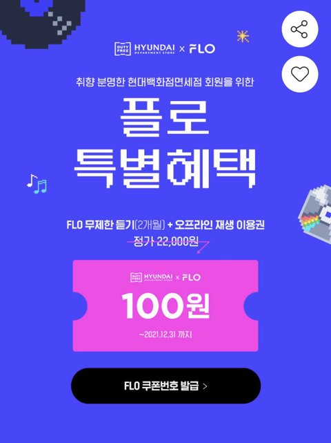 플로 2개월 100원 줌 가입하고 받아 플로 돌리자 https://m.hddfs.com/event/op/evnt/evntDetail.do?evntId=0003203&MG=KMMMainevent_1