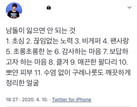 12. 꾸준한 소통 13. 외모 14. 개그감